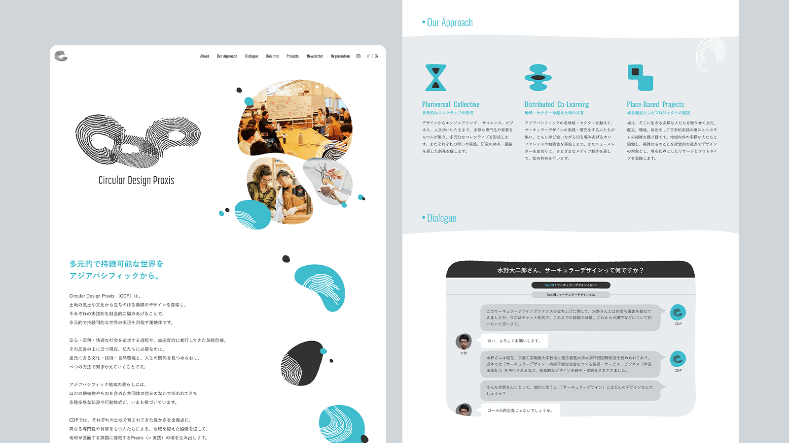 Circular Design Praxis (CDP)は、土地の風土や文化から立ちのぼる循環のデザインを探索し、それぞれの実践知を創造的に編みあげることで、多元的で持続可能な世界の実現を目指す運動体です。CDPは、それぞれの土地で育まれてきた豊かさを出発点に、異なる専門性や背景をもつ人たちによる、地域を越えた協働を通して、地球が直面する課題に挑戦するPraxis(= 実践)の場を生み出します。 私たちShedは、CDPの活動を発信する公式サイトの制作を担当しました。